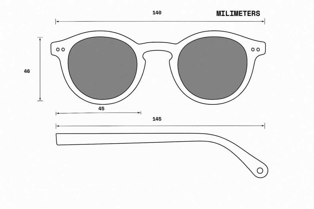 عرض عینک: ۱۴۲ میلیمتر/ عرض لنز: ۵۱ میلیمتر/ ارتفاع عینک: ۳۷ میلیمتر/ طول دسته: ۱۴۷ میلیمتر