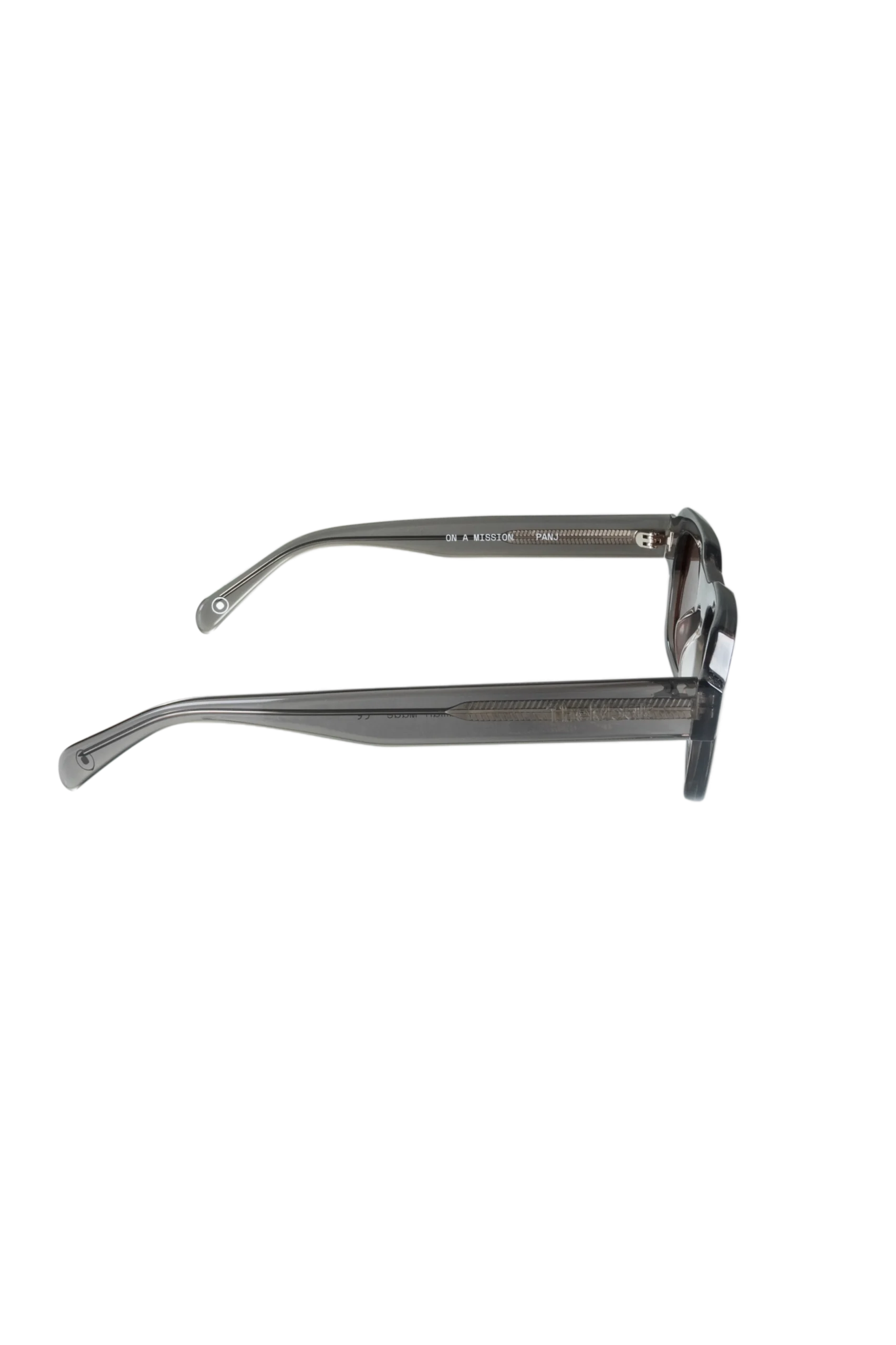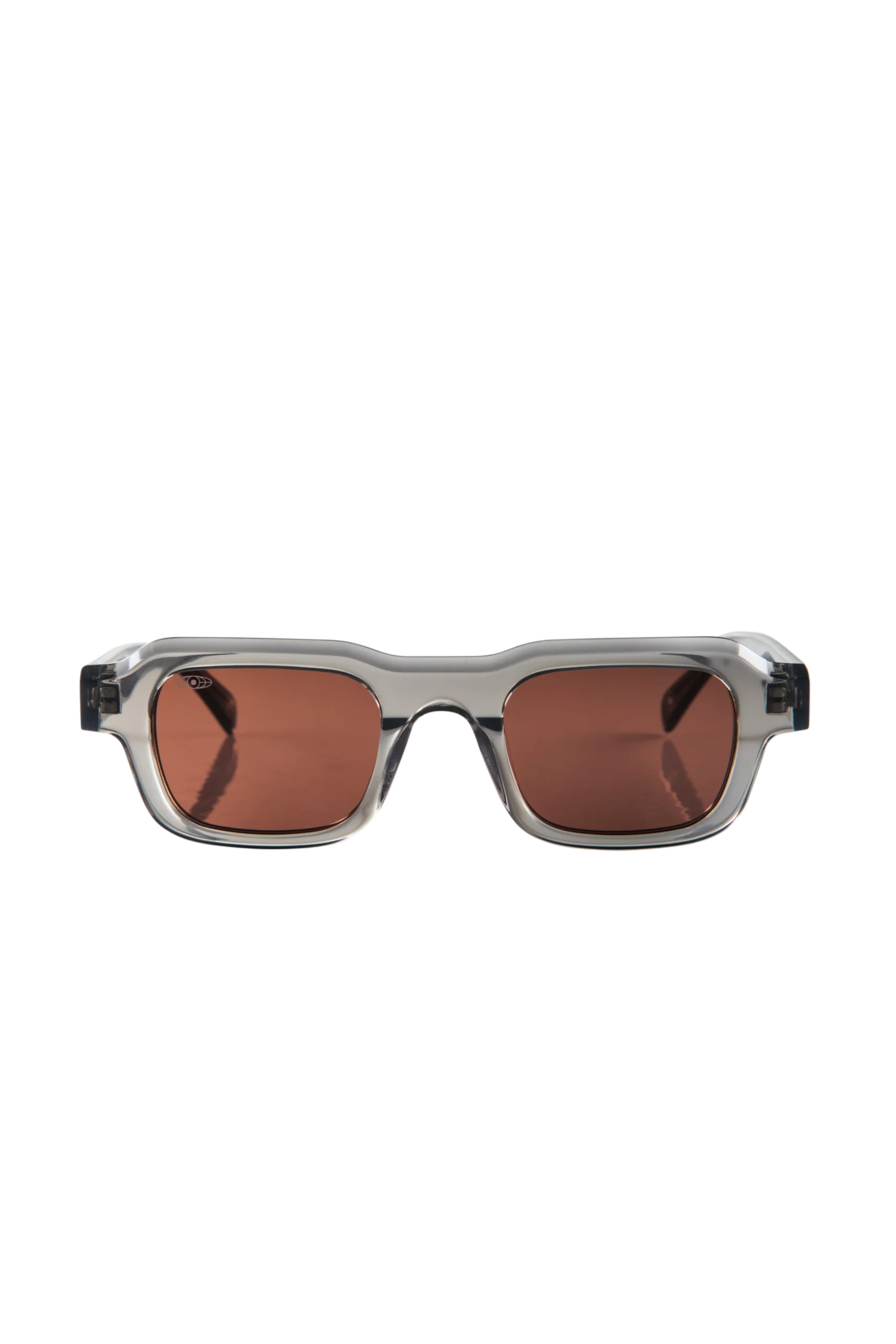 عینک PANJ با فریم شفاف خاکستری و طراحی مربعی چشمگیرش، تلفیقی از مدرنیته و جسارته. بدنه نیمهشفاف با تهرنگ دودی، عمق و شخصیت خاصی به ظاهرش داده که با لنزهای نارنجی-قهوهای گرمش، کنتراست جذابی ایجاد کرده.